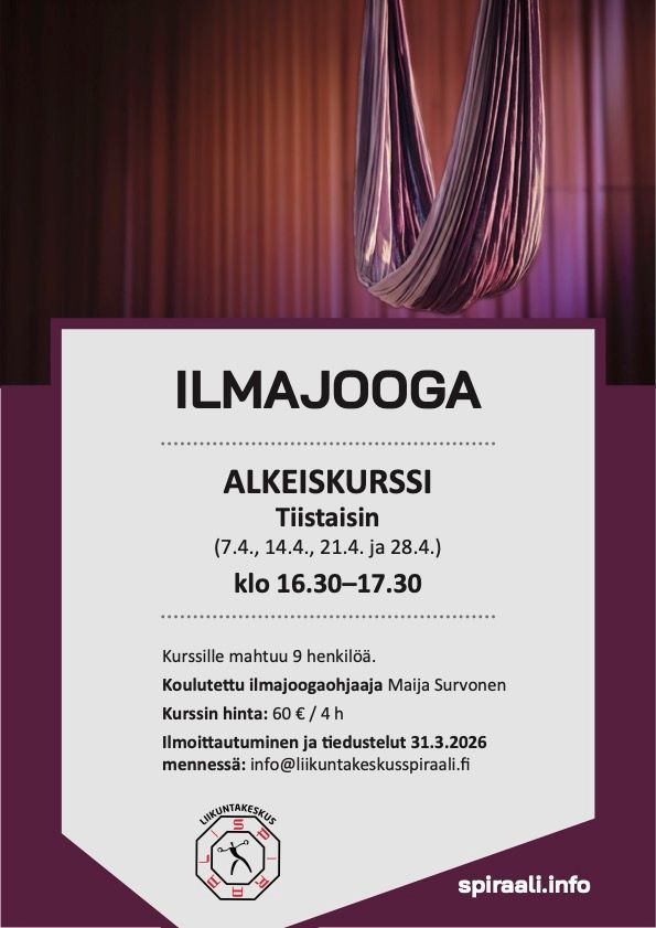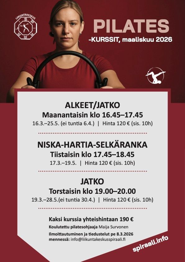 KEVÄÄN 2026 KURSSIT JA RYHMÄLIIKUNTATUNNIT NYT JULKAISTU. KATSO TARKEMMAT TIEDOT ALTA.